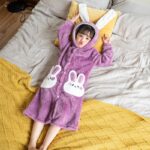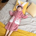 Avec ce peignoir à capuche d’oreilles de lapin, votre fille va adorer le mettre après le bain. Facile à attacher avec ses boutons pressions.
