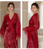 Vous souhaiteriez trouver un modèle de peignoir féminin et élégant pour ajouter une touche glamour à votre nuit de noce ou votre lune de miel ? Optez pour ce peignoir fin en satin de rayonne qui sera à la fois léger à porter et très flatteur pour votre silhouette. Ses couleurs symbolisant l’amour ne manqueront pas de vous plaire !
