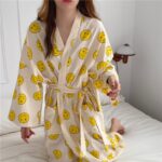 Ce joli kimono avec sa couleur douce et ses smileys imprimés vous donnent un aspect très mignon pour rester confortablement chez vous !