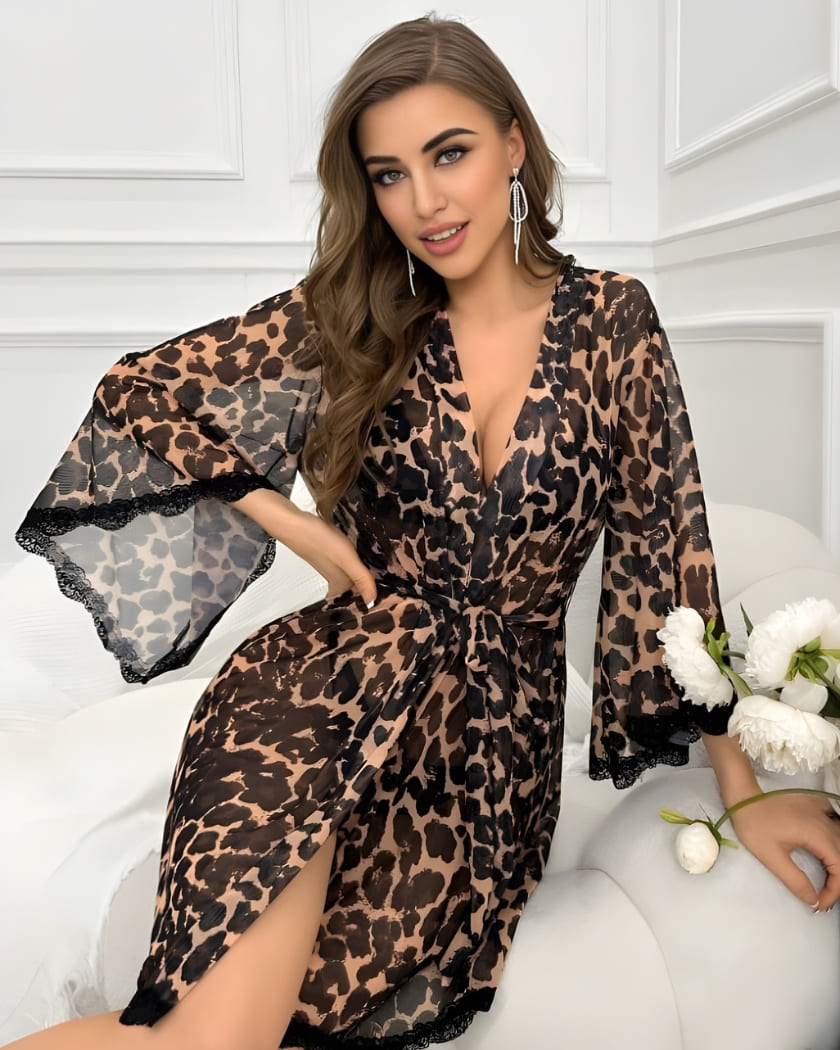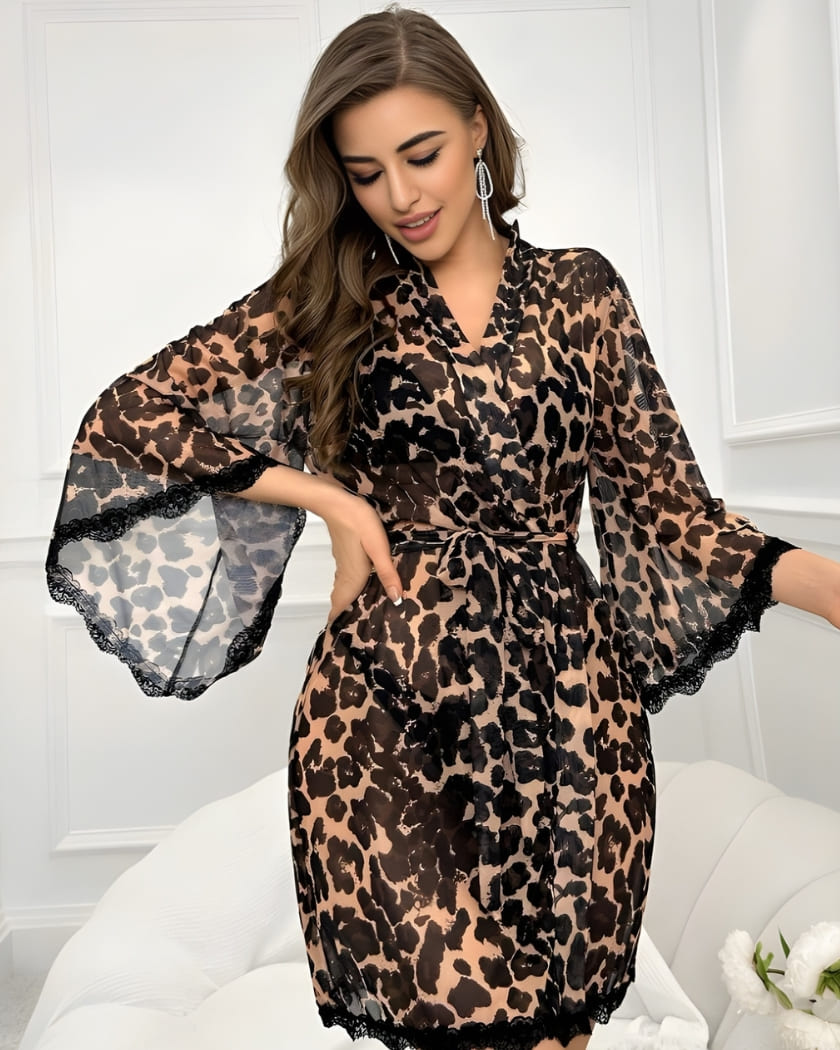 Dîtes-nous sincèrement… Vous n’aviez jamais vu un peignoir comme celui-ci ! Mi-léopard, mi-dentelle noire, 100% plaisir ! Avec ce jeu de transparence pour un moment sexy.