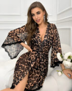 L’imprimé léopard est résolument glamour. Il donne à vos styles les plus simples en côté chic ! Utilisé sur un peignoir, il vous habille luxueusement pour vous détendre dans votre foyer en prenant soin de vous, tout simplement.