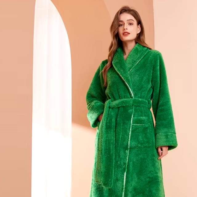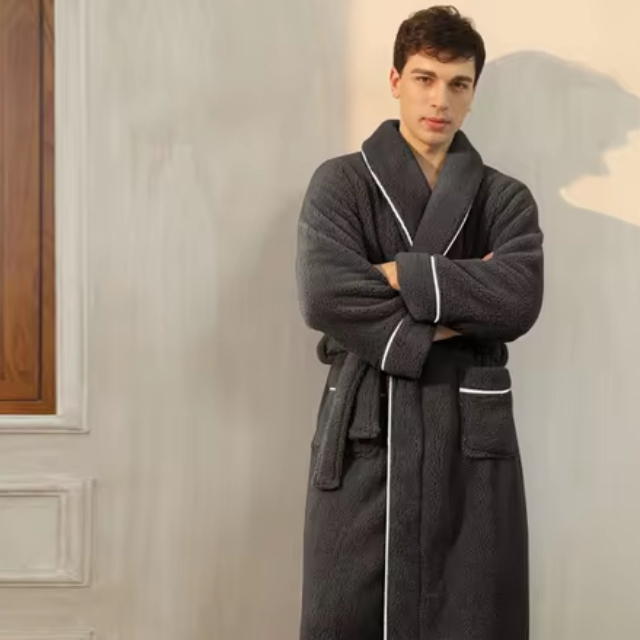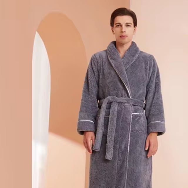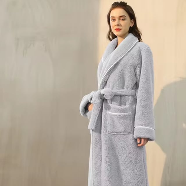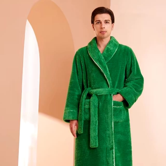 Confectionné dans une matière douce, ce peignoir long et épais pour homme et femme procure une sensation de chaleur enveloppante. Sa coupe longue offre une protection optimale contre le froid, tout en ajoutant une touche sophistiquée à votre look décontracté.