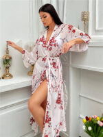 Avec cette robe peignoir, on pense au voyage grรขce ร ses illustrations de cigognes et de cerisiers en fleurs! Dรฉlicate sur votre peau, succombez pour le look bohรจme chic en un tour de main!
