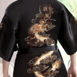 Vous sentir comme au Japon, où que vous soyez. Mettez vous à l’aise dans cette robe de chambre en soie, inspirée des traditionnels yukata du Japon.