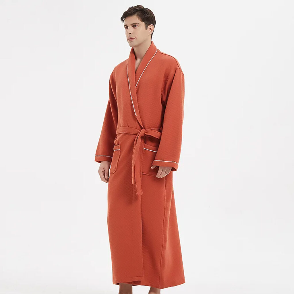 Que ce soit pour vos matinées tranquilles, vos soirées détente ou vos week-ends cocooning, notre peignoir nid d’abeille long à liseret pour homme est bien plus qu’un vêtement d’intérieur, c’est une pièce maîtresse de votre confort personnel.
